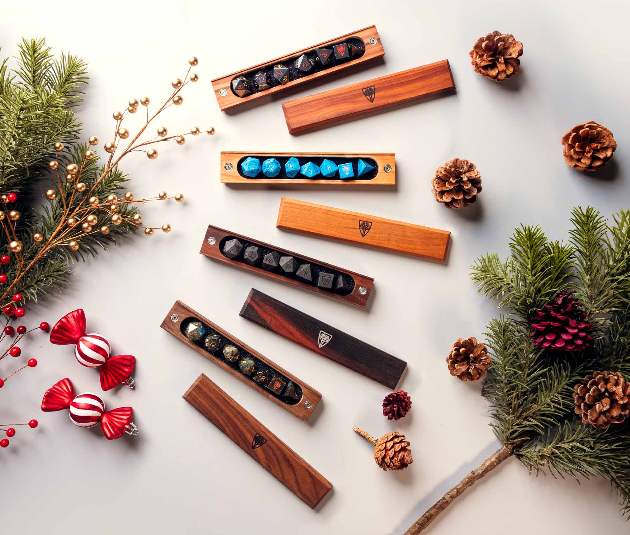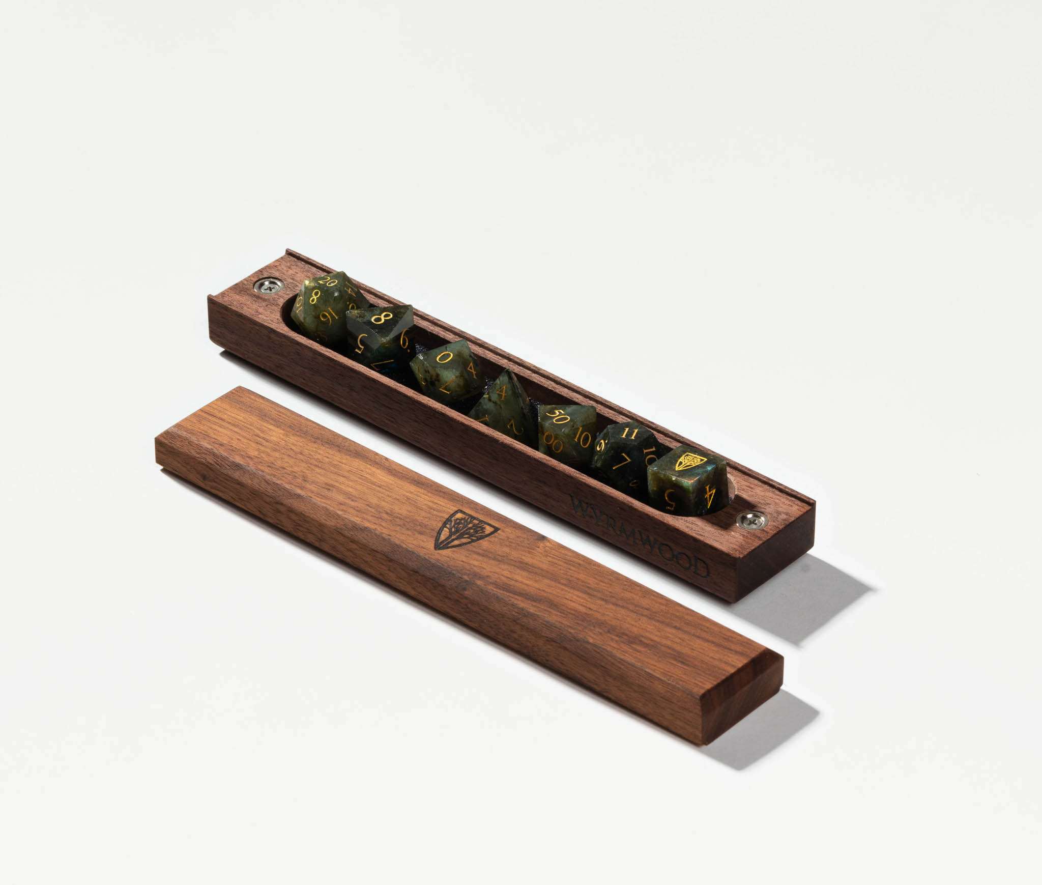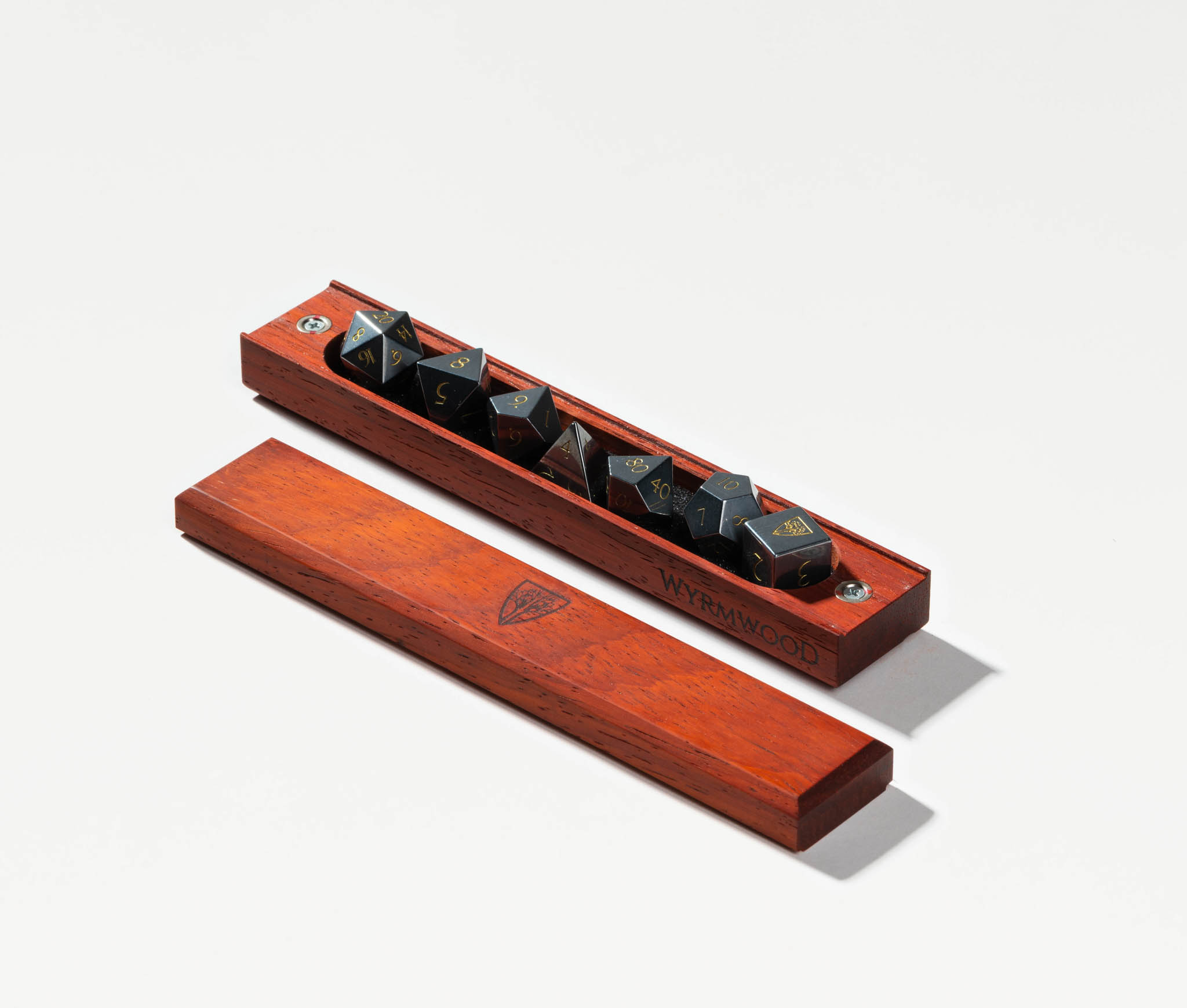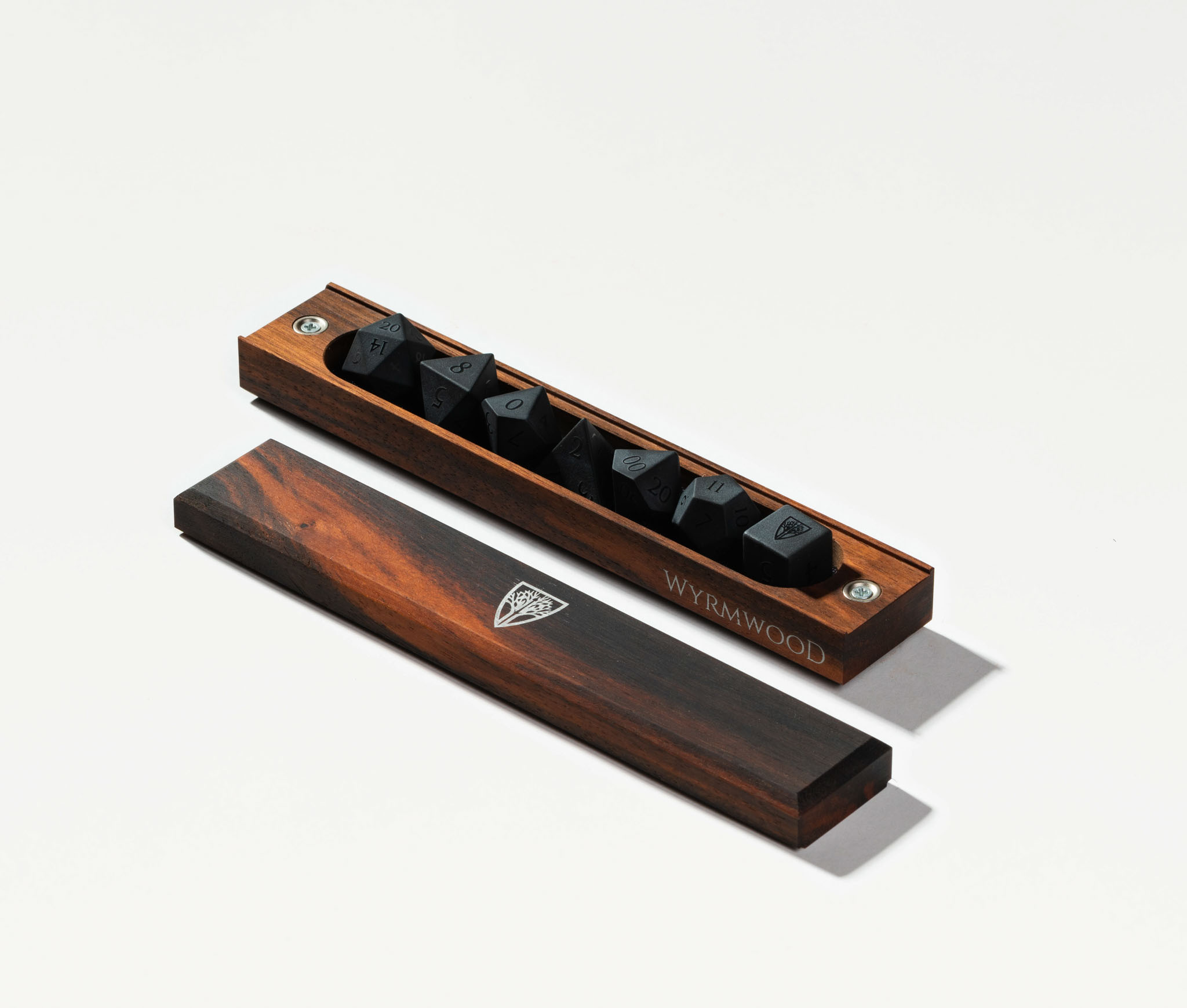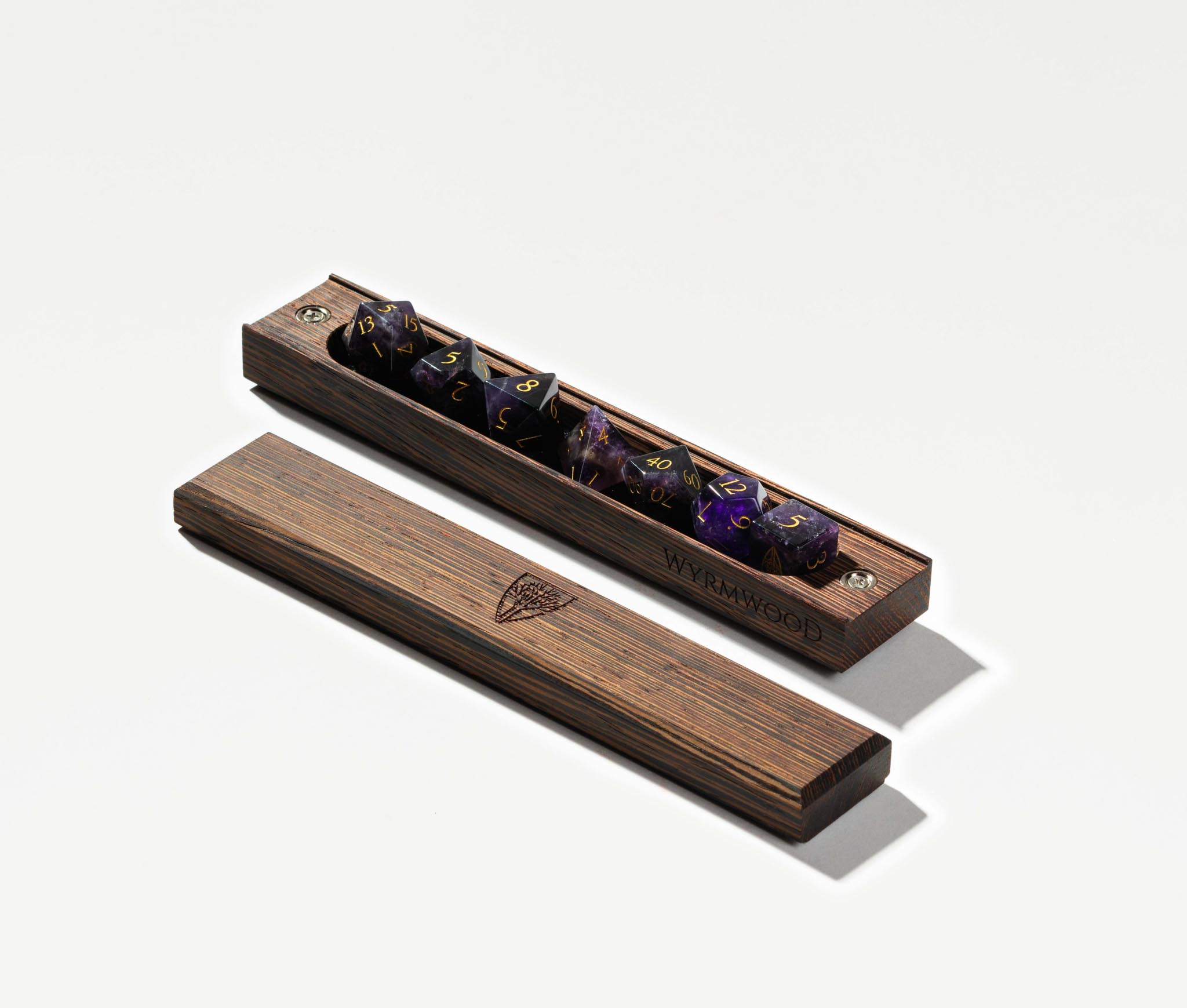 Featuring solid wood construction and a powerful magnetic closure, the Dice Vault is a place of honor for your favorite set of dice. Each Dice Vault snugly fits a full set of standard polyhedral dice (up to 10 dice), with removable foam liners on the top and bottom to keep your dice protected and secure.