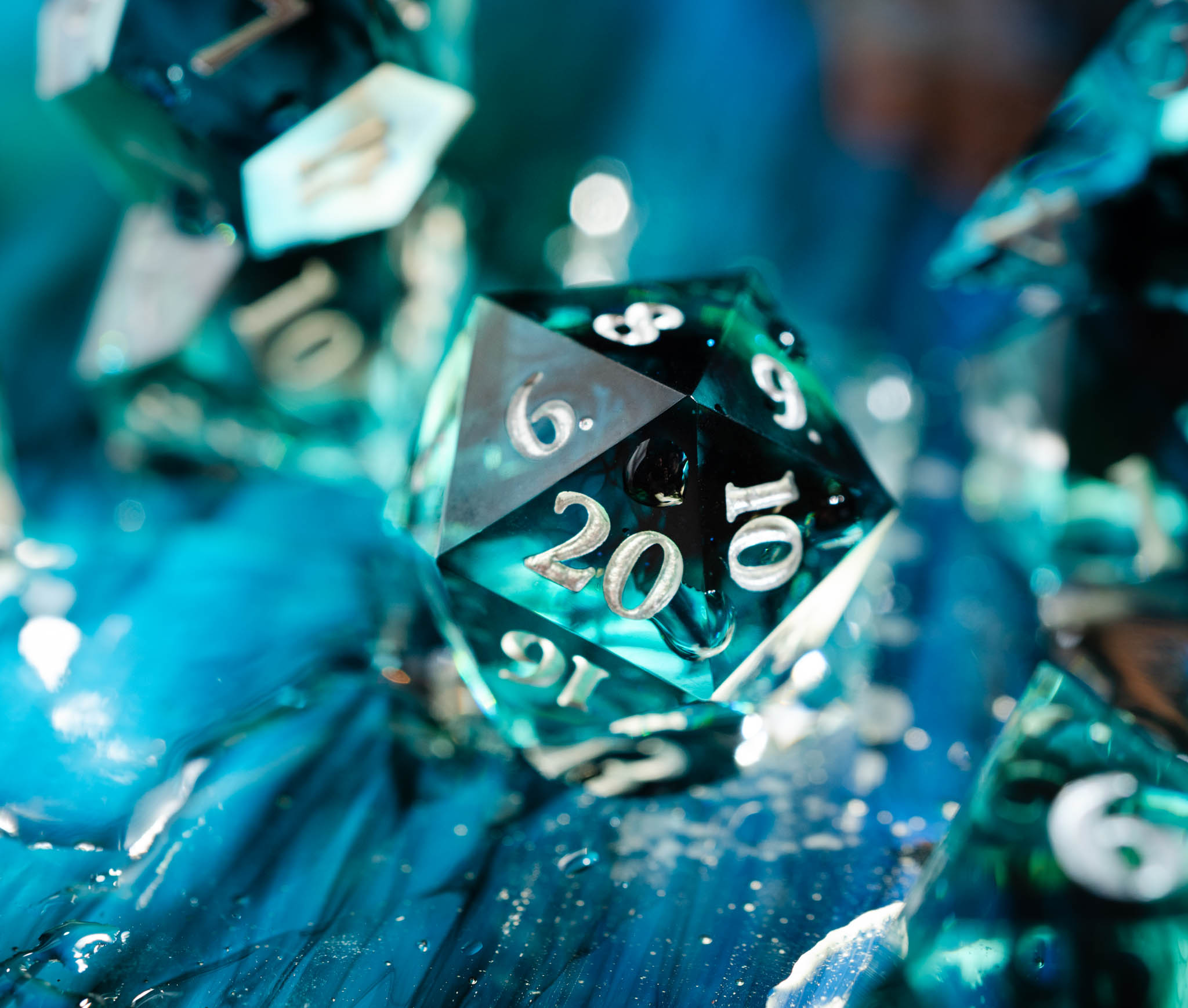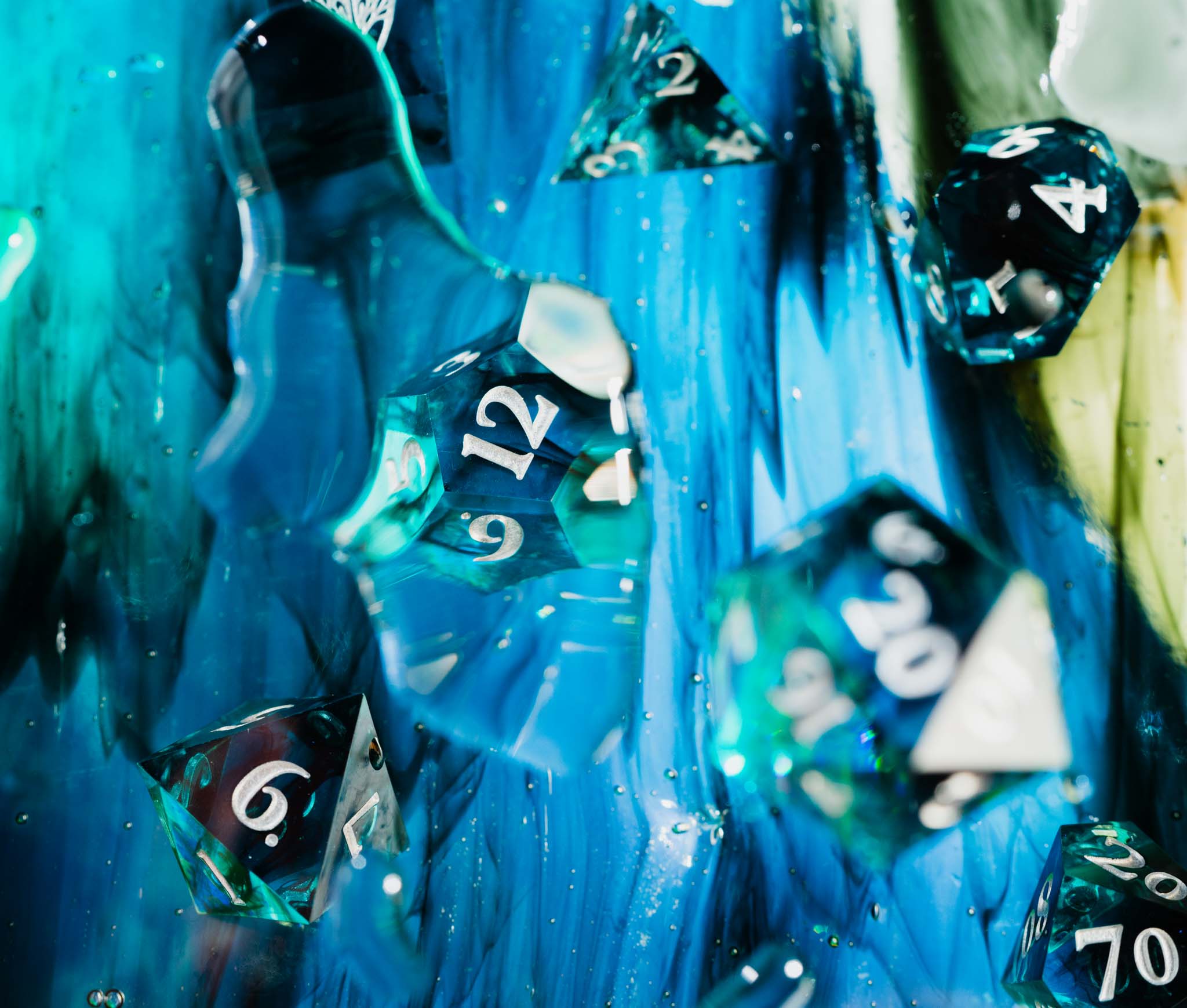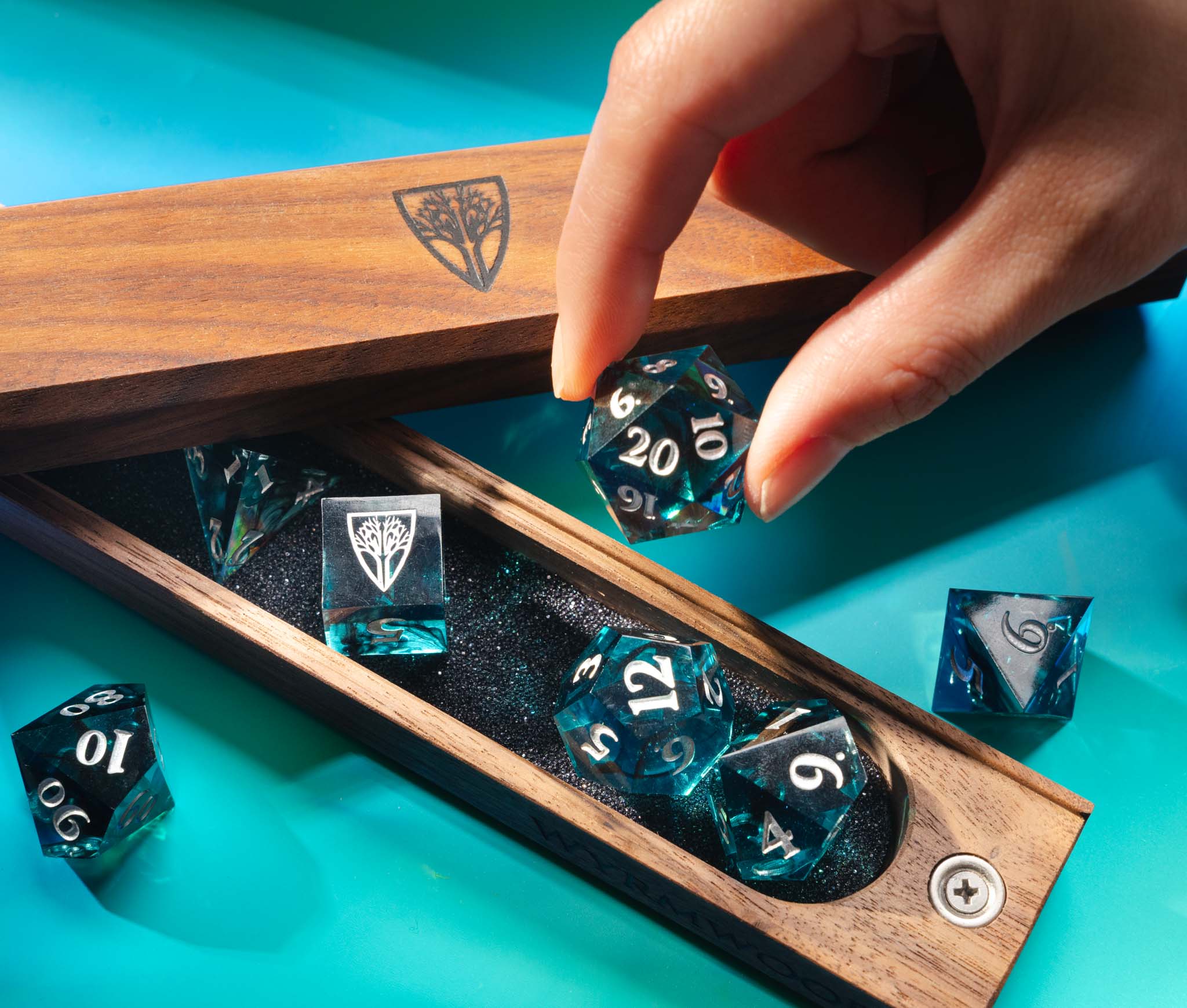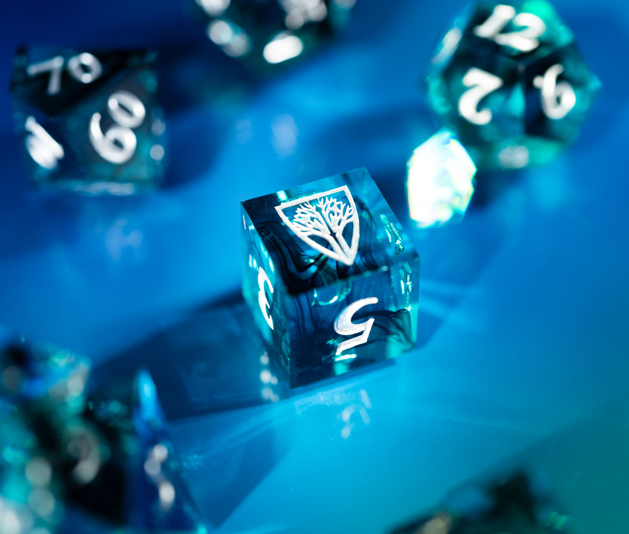 All-new, finely crafted sharp-edged resin dice from Wyrmwood. These handcrafted dice, available in four unique colorways, feature carefully selected inclusions and swirls to create a distinct impression in the hand and on the table. While photos are representative of each colorway, specific dice will vary slightly.