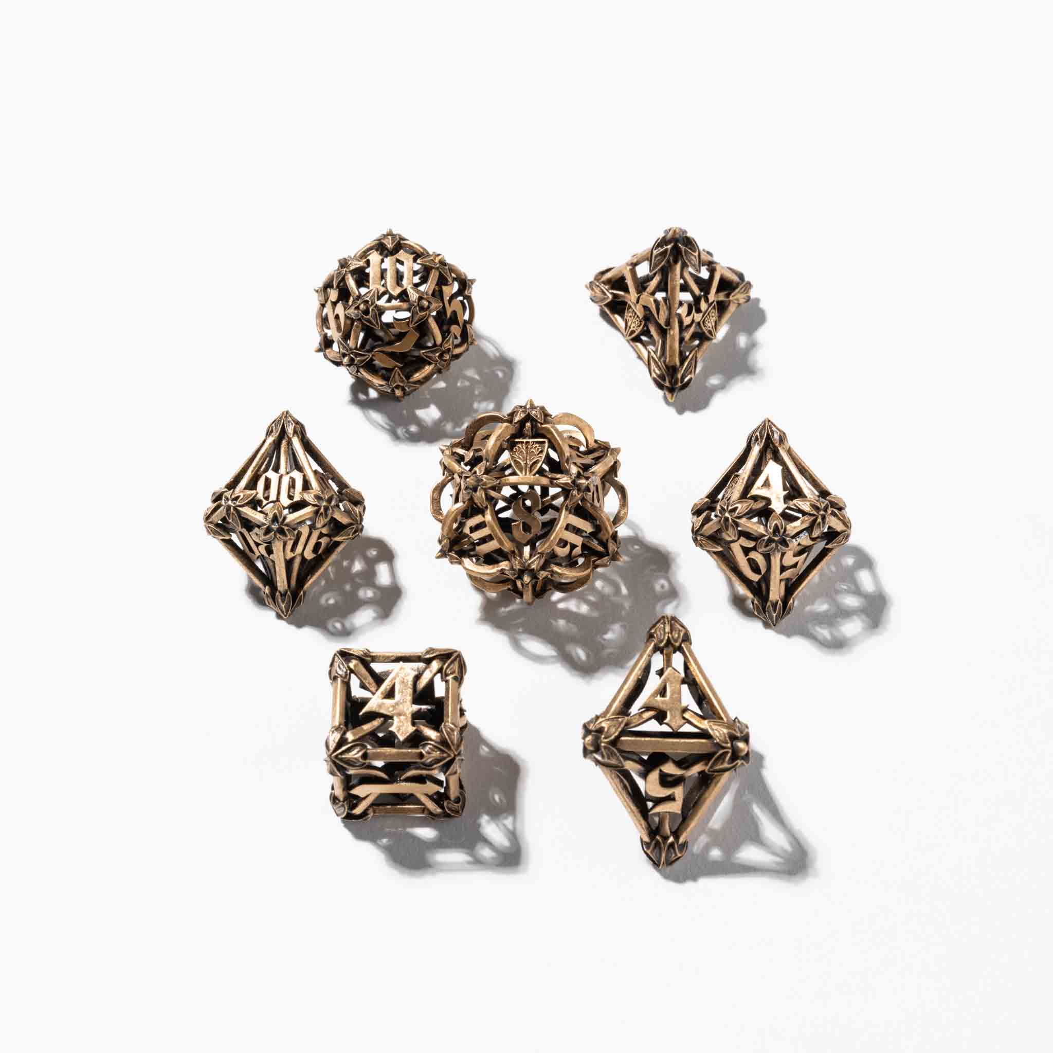 The full set of seven heirloom quality dice.